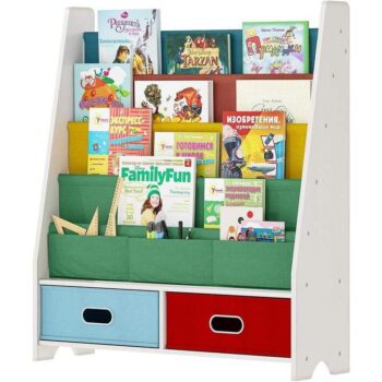 Kid-Friendly Bookshelf with Sling Shelves and Toy Storage Boxes